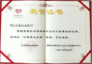北海集團榮獲濱海公益活動愛心單位等榮譽稱號