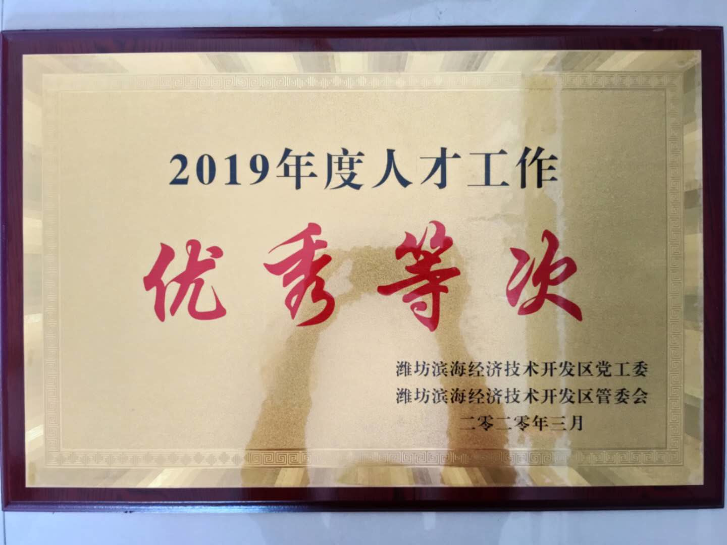 今年3月,公司獲得開發(fā)區(qū)2019年度人才工作優(yōu)秀獎(jiǎng)榮譽(yù)稱號(hào)。