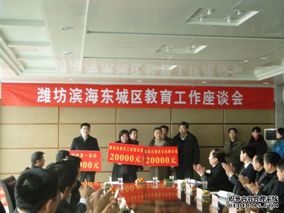 濰坊市北海熱力有限公司在發(fā)展的同時銘記社會責(zé)任、關(guān)心公益事業(yè)。2012年1月14日在“濰坊濱海東城區(qū)教育工作座談會”會后捐款20000元,用于支持央子街道轄區(qū)的學(xué)校建設(shè)和資助貧困學(xué)生。圖為座談會現(xiàn)場圖為捐助現(xiàn)場圖為捐資助學(xué)表彰錦旗