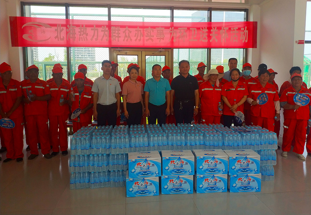 公司黨支部為環(huán)衛(wèi)工人們送去北海飲用純凈水近2000瓶,以此方式,在這炎炎夏日,為他們送上一份關(guān)懷,送去一份清涼。